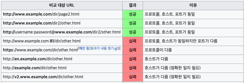 즉. 출처(Origin) 라는 것은 Protolcol과 Host 그리고 Port 까지 모두 합친 URL을 의미한다.